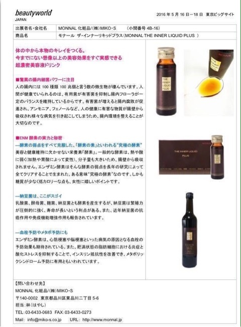 2016年5月16日(月) – 18日(水)に開催されましたビューティーワールド ジャパン「2016」ではご多忙の中、弊社モナール化粧品ブースにお立ち寄りいただき、誠にありがとうございました。